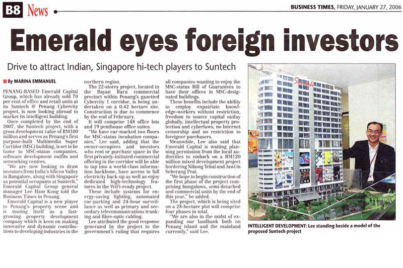 • 27 January 2006, New Straits Times – Emerald Eyes Foreign Investors